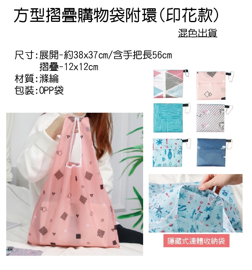 04P-FB012 方型摺叠购物袋附环 (印花款), 印花折叠购物袋, 收纳袋, 摺叠袋, 印花袋