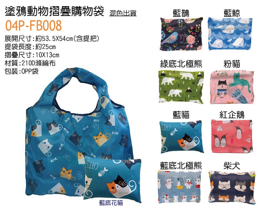 04P-FB008 涂鸦动物折叠购物袋, 环保购物袋, 摺叠手提袋, 收纳袋, 广告赠品袋, 公司行号企业行销不可或缺的广告礼赠品