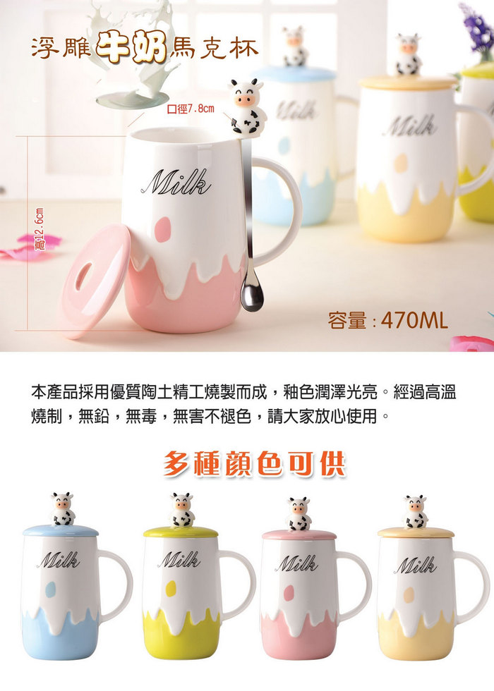 创意造型可爱乳牛马克杯 可做赠品杯,陶瓷杯,马克杯,水杯,水果杯, 咖啡杯,家用礼品,企业礼品。